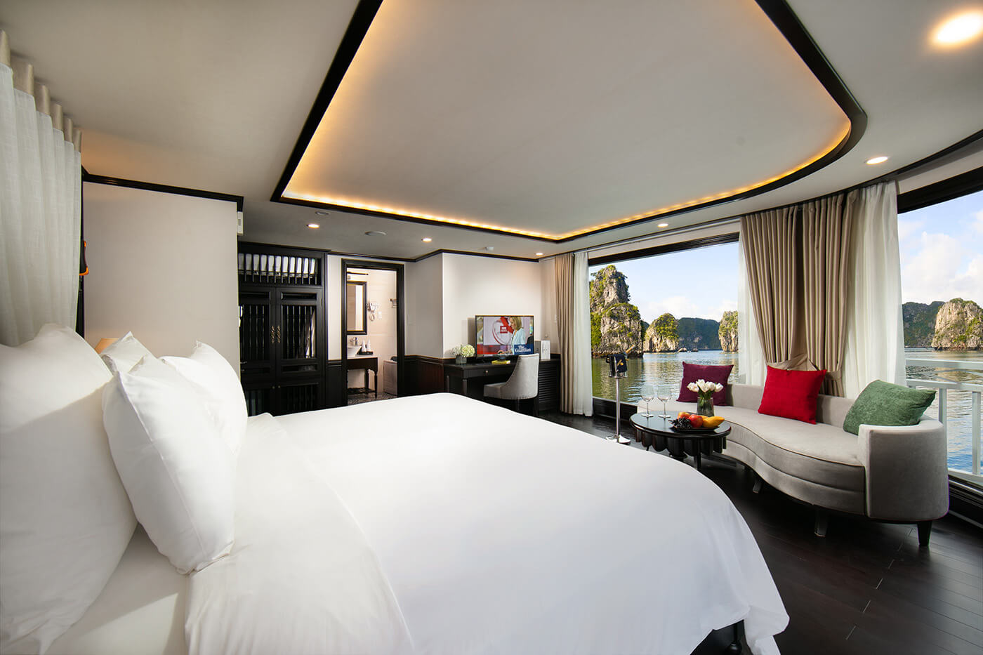 13: 00 Enjoy a nice buffet lunch at our restaurant while the cruise goes ahead to Halong Bay